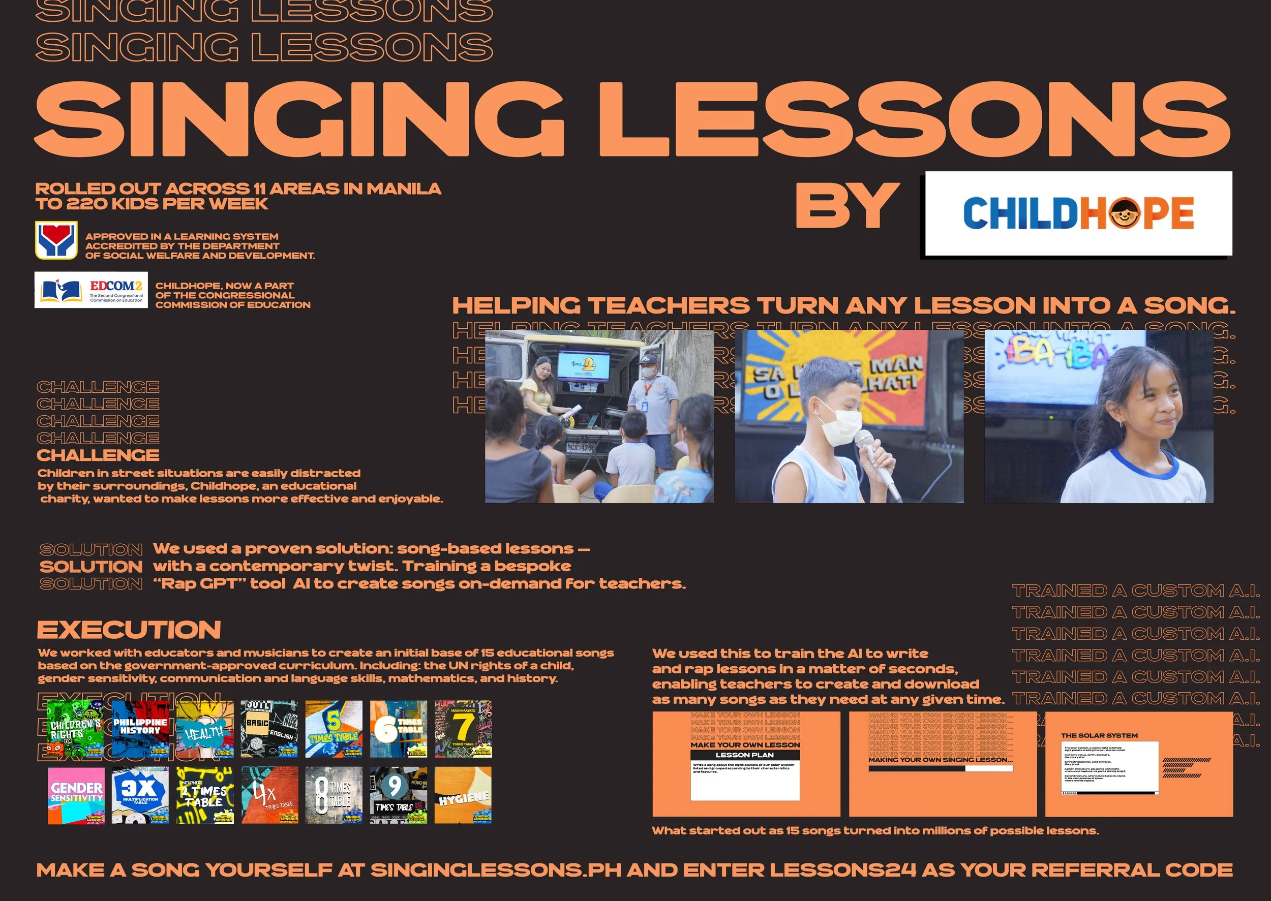 Then we trained a custom AI tool CALLED “Rap GPT” to generate educational songs on demand, allowing teachers to instantly transform any lesson into something kids could listen to, repeat, and remember.